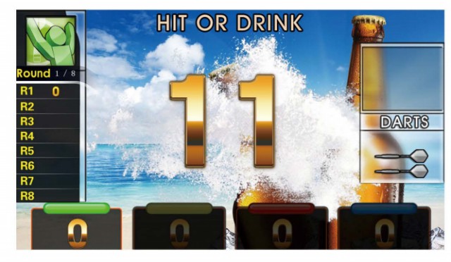 每輪以屏幕上顯示的分區和紅心為目標, 投中即可獲得相應分數, 若3鏢內未能投中則得分減半, 并罰酒一杯, 最后得分最高者獲勝。