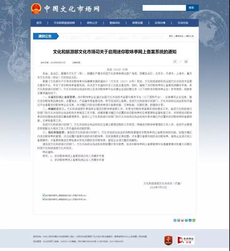 與此同時(shí),也出現(xiàn)了設(shè)備安全難保障、衛(wèi)生環(huán)境較差、歌曲內(nèi)容違規(guī)或者侵權(quán)等問題,針對這些問題,2017年,文化和旅游部發(fā)布了《文化部關(guān)于引導(dǎo)迷你歌詠亭市場健康發(fā)展的通知》,全面規(guī)范了迷你歌詠亭市場,近日,文化和旅游部文化市場司印發(fā)了《關(guān)于啟用迷你歌詠亭網(wǎng)上備案系統(tǒng)的通知》,通知要求各相關(guān)部門全面實(shí)行網(wǎng)上備案管理,并明確了權(quán)責(zé)分工,規(guī)范了迷你歌詠亭的日常管理和監(jiān)督檢查工作。此消息一出,一石激起千層浪。